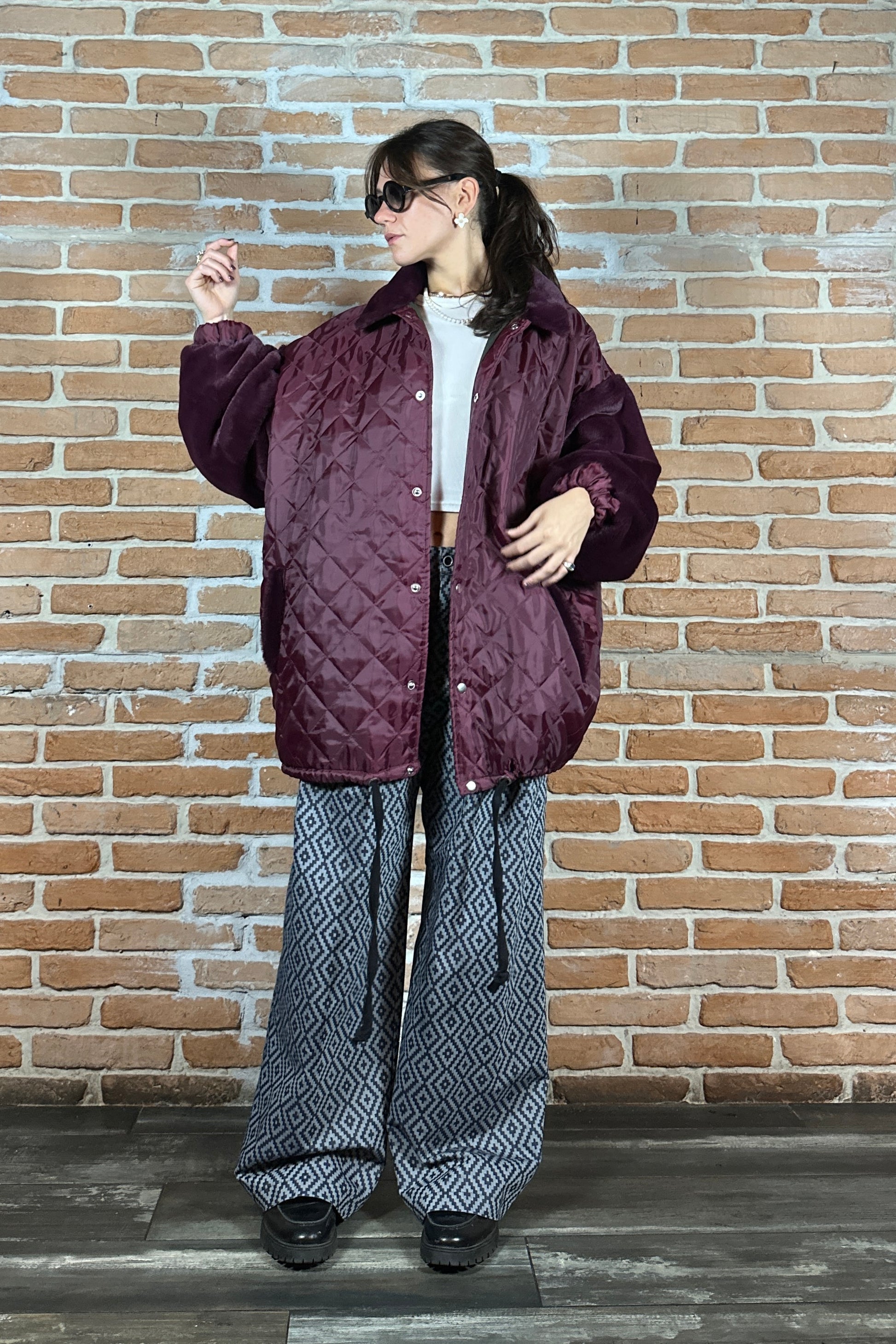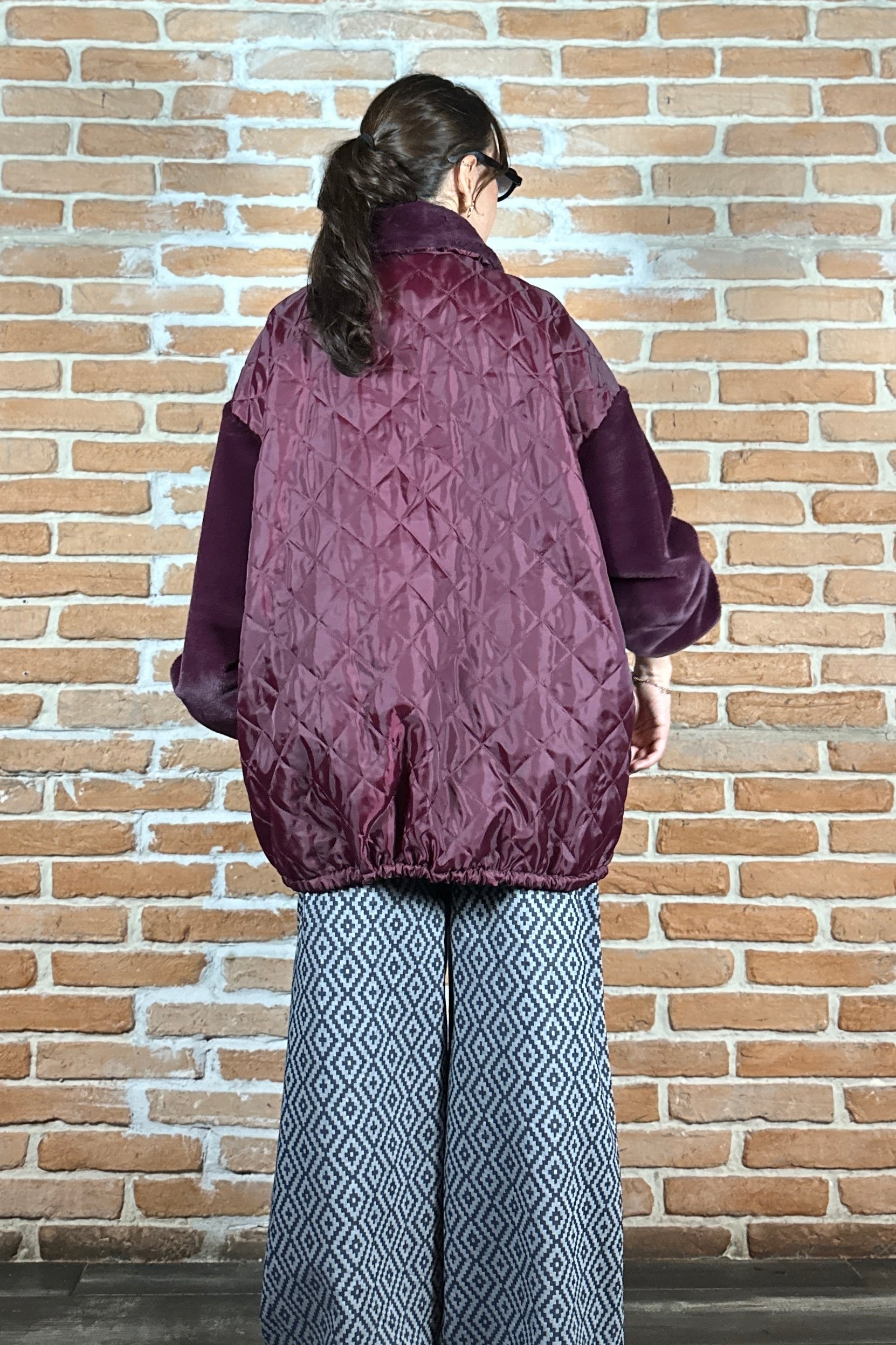 Colletto, maniche e pattine tasche in morbida eco-pelliccia tono su tono.