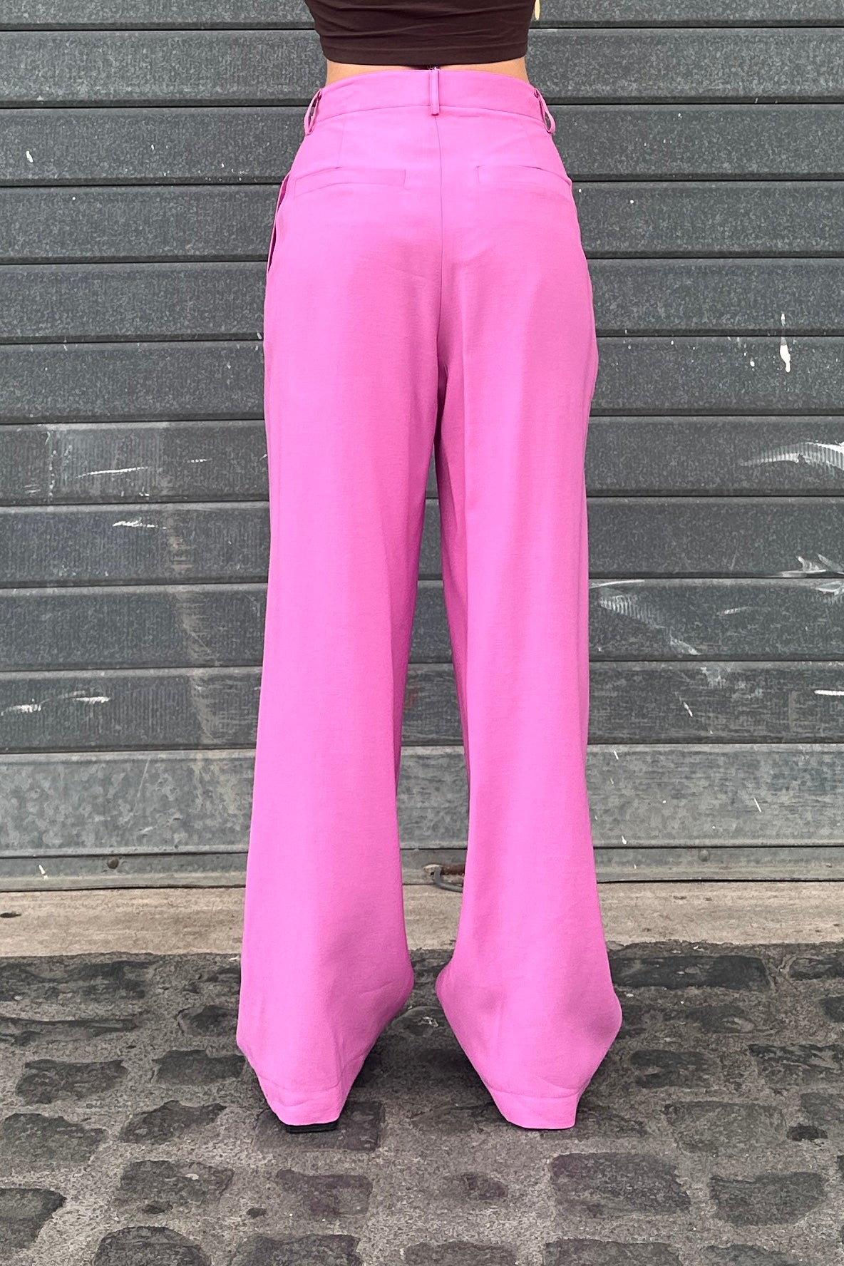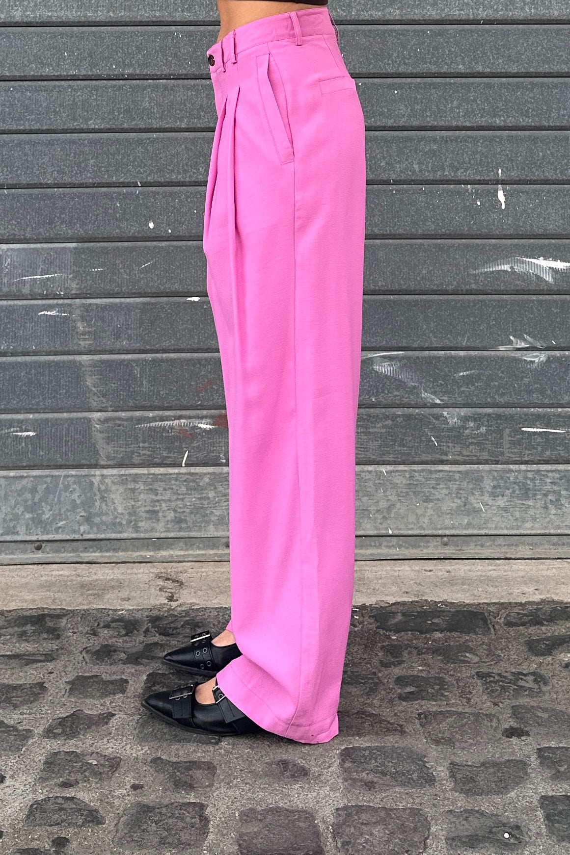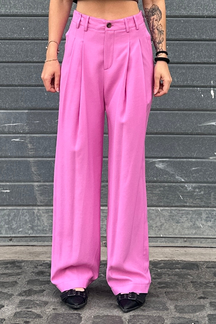 Un pantalone dal taglio ampio e fluido. Realizzato in tessuto leggero e morbido, presenta pieghe frontali, passanti per cintura e chiusura con bottone e zip. Perfetto per look casual raffinati